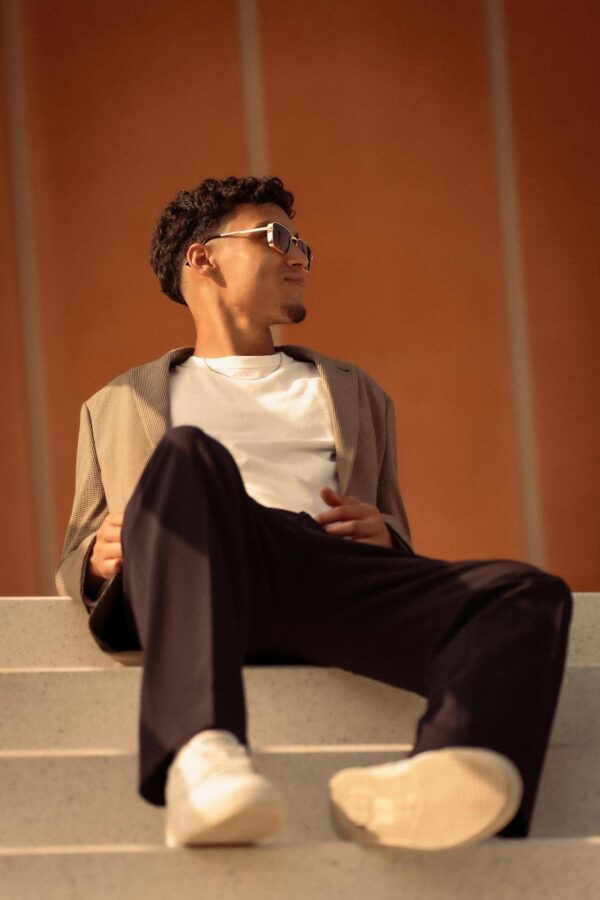 1. Stand on a piece of paper against a wall with your heels gently touching the wall.